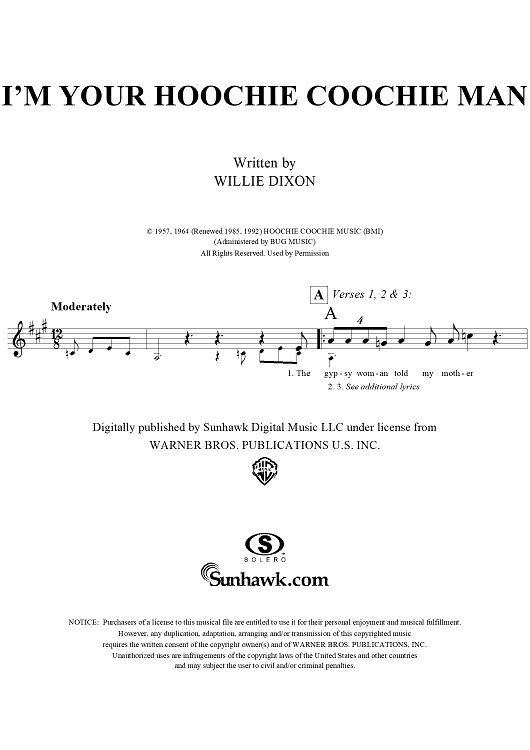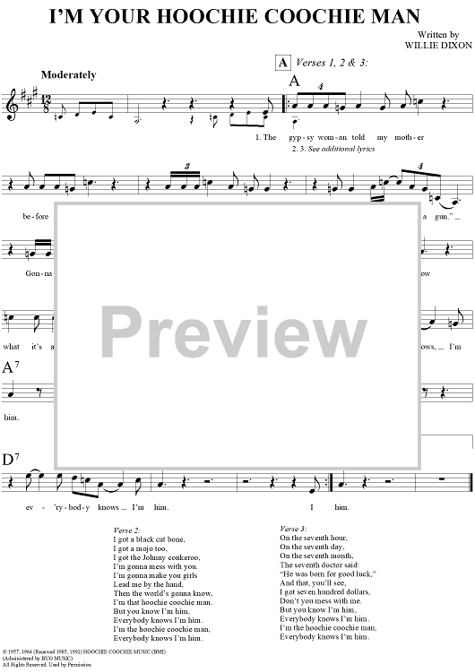 "I'm Your Hoochie Coochie Man" Sheet Music by Willie Dixon