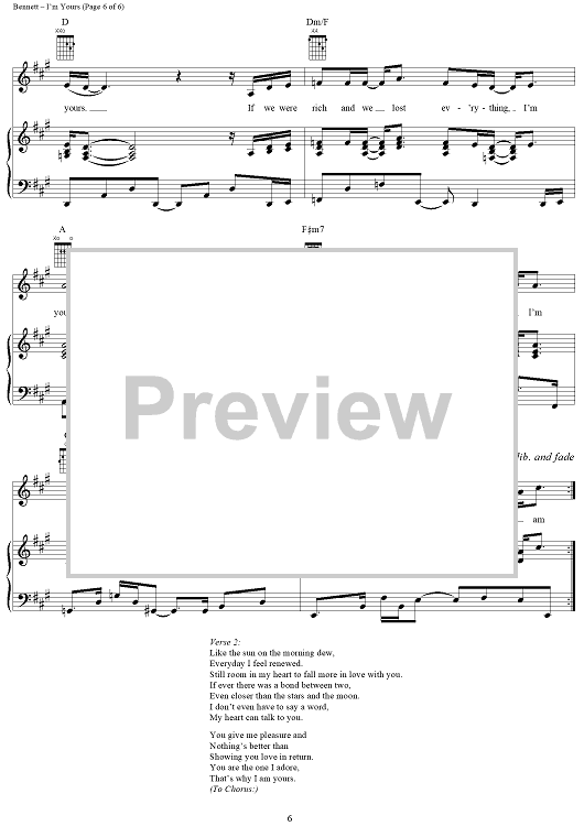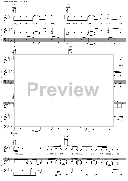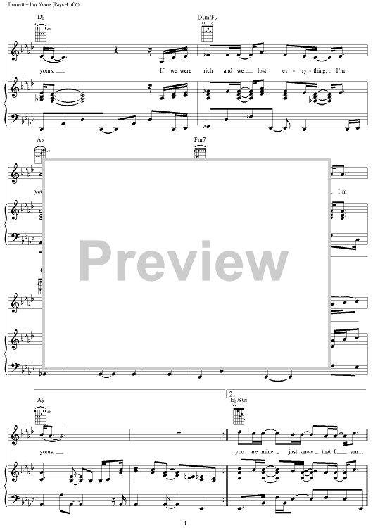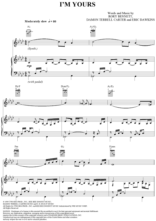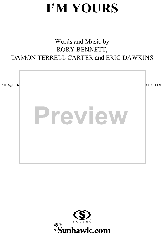 Digital Sheet Music for I'm Yours by Rory Bennett, Eric Dawkins, Damon Terrell Carter scored for Piano/Vocal/Chords; id:274278