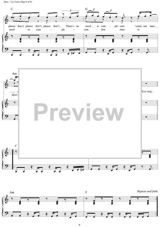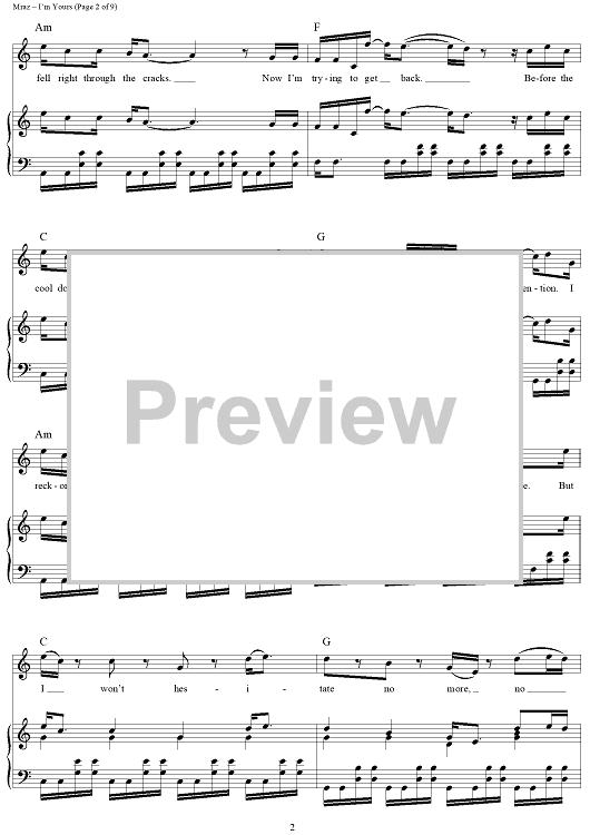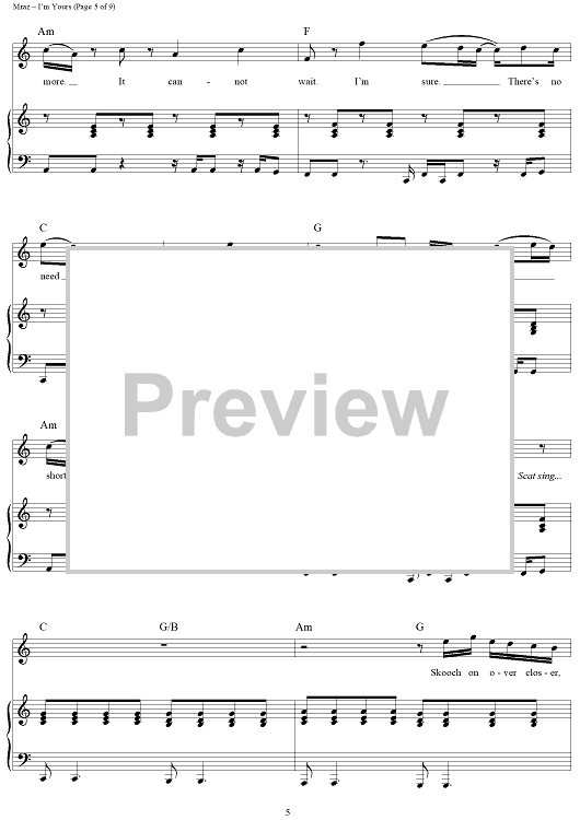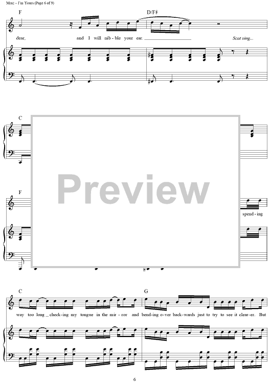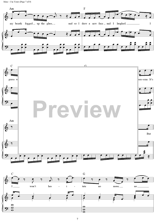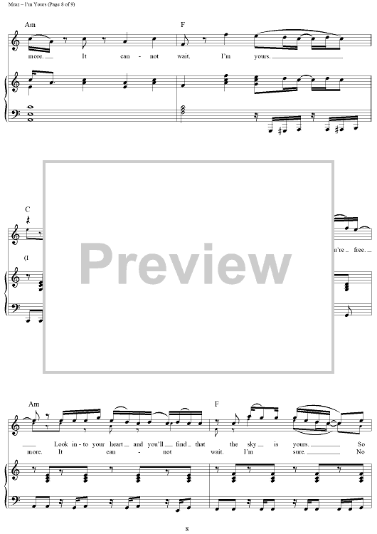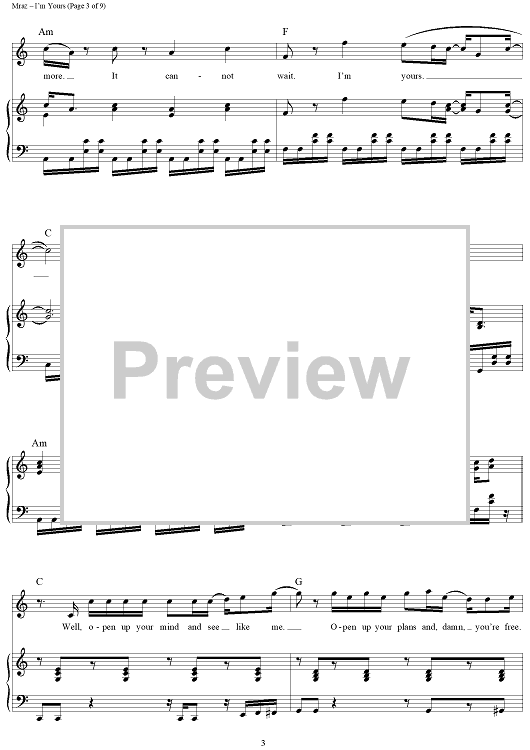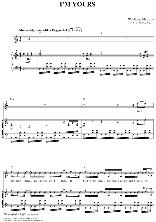 Digital Sheet Music for I'm Yours by Jason Mraz scored for Piano/Vocal/Chords; id:447366