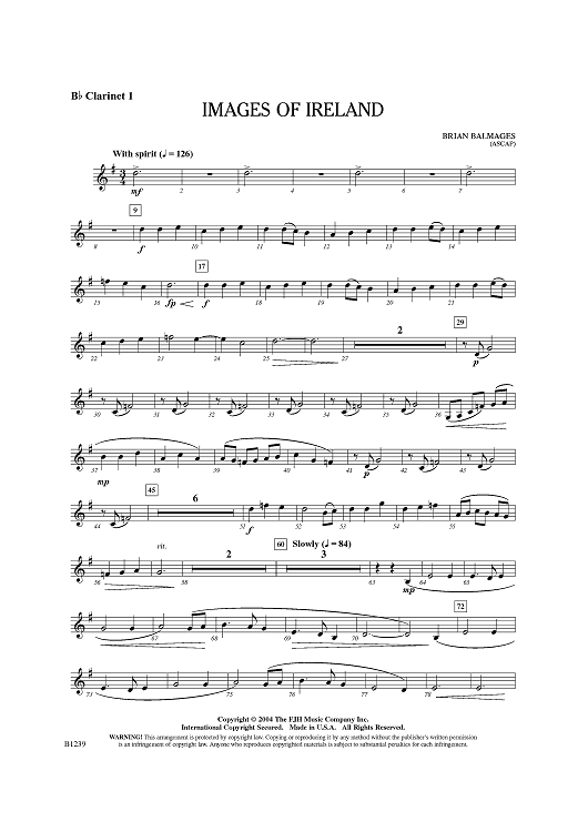 Digital Sheet Music for Images of Ireland - Bb Clarinet 1 by Brian Balmages scored for Concert Band; id:437861