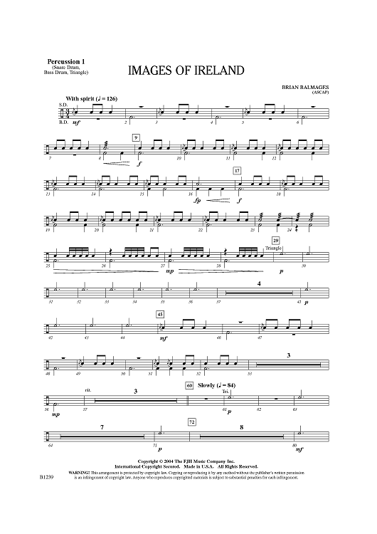 Digital Sheet Music for Images of Ireland - Percussion 1 by Brian Balmages scored for Concert Band; id:437878