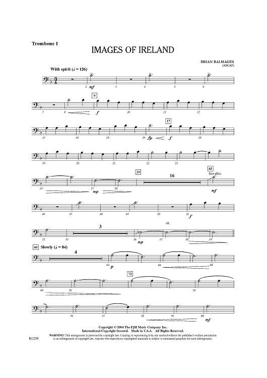 Digital Sheet Music for Images of Ireland - Trombone 1 by Brian Balmages scored for Concert Band; id:437871