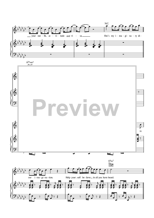 Digital Sheet Music for Imaginary Diva by Westlife scored for Piano/Vocal/Chords; id:377512
