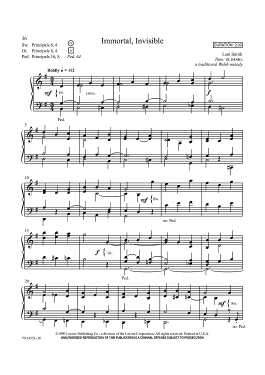 Digital Sheet Music for Immortal, Invisible by Traditional Welsh Melody, Lani Smith scored for Organ; id:433736