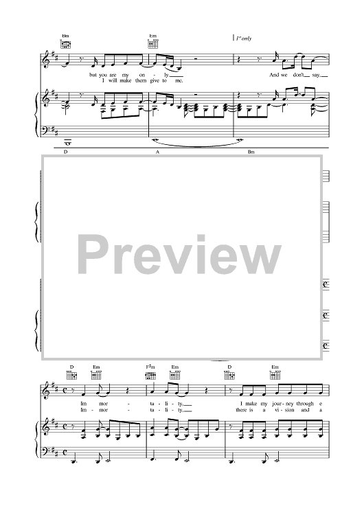 Digital Sheet Music for Immortality by Celine Dion scored for Piano/Vocal/Chords; id:376610