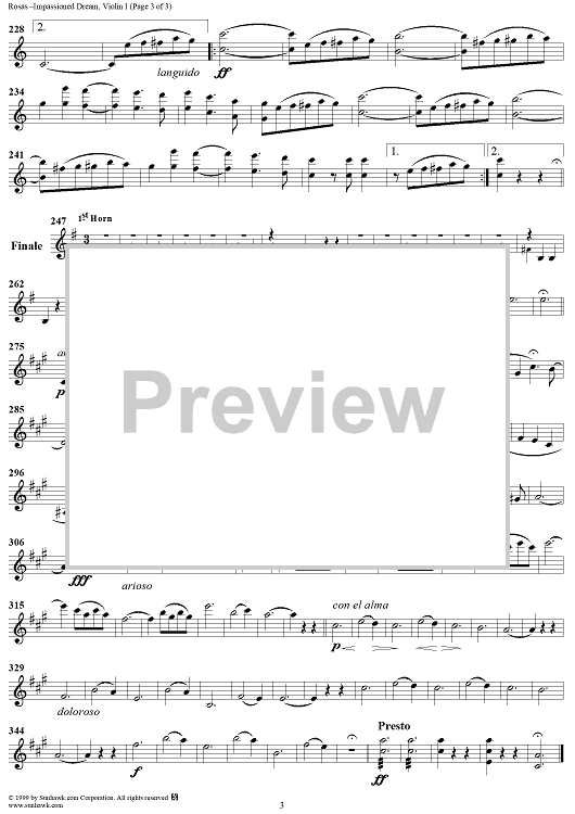 "Impassioned Dream - Violin 1" Sheet Music by Juventino Rosas