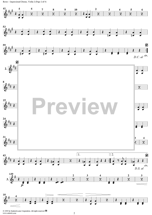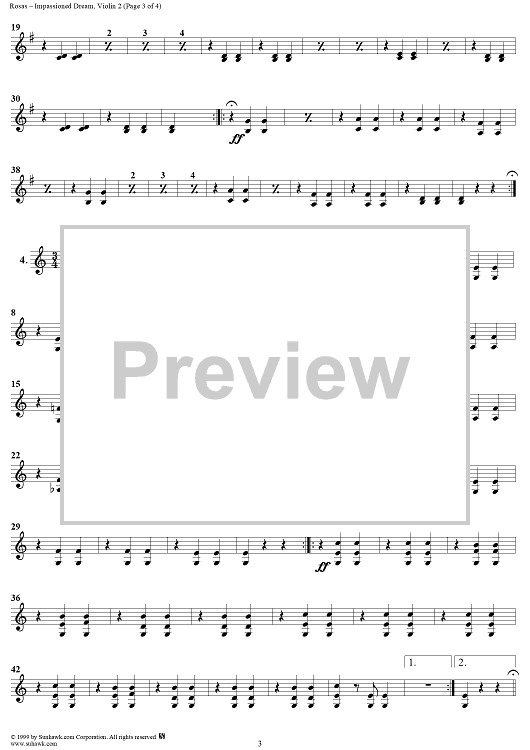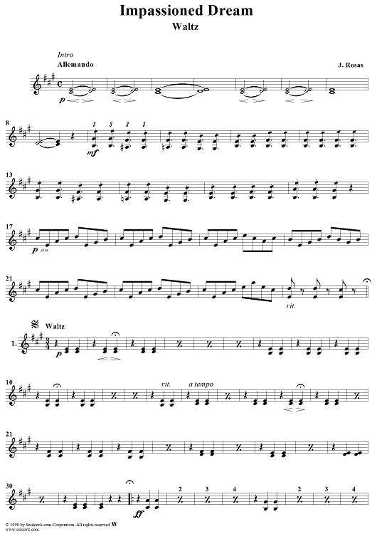 Digital Sheet Music for Impassioned Dream - Violin 2 by Juventino Rosas scored for String Quartet; id:263495