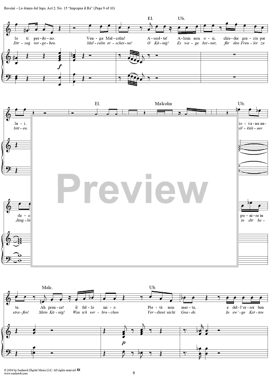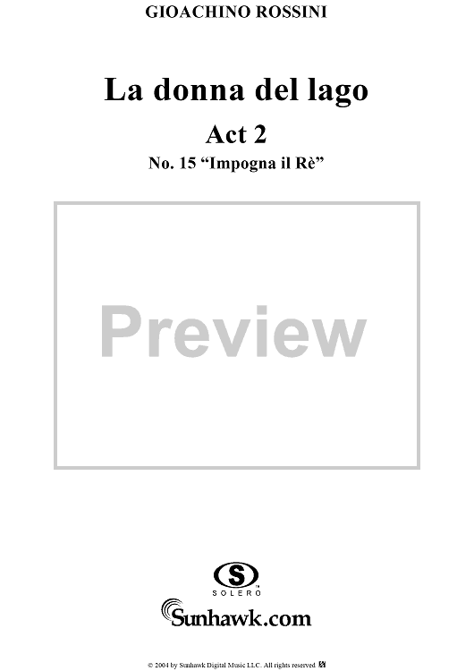 Digital Sheet Music for Impogna il Re: No. 15 from "La donna del lago", Act 2 - Score by Gioachino Rossini scored for Voice/Piano; id:303451