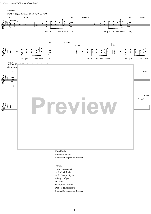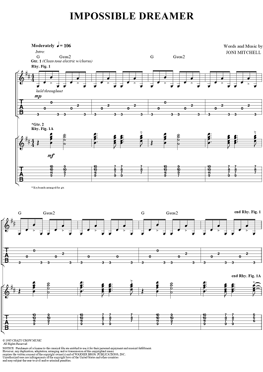 "Impossible Dreamer" Sheet Music by Joni Mitchell