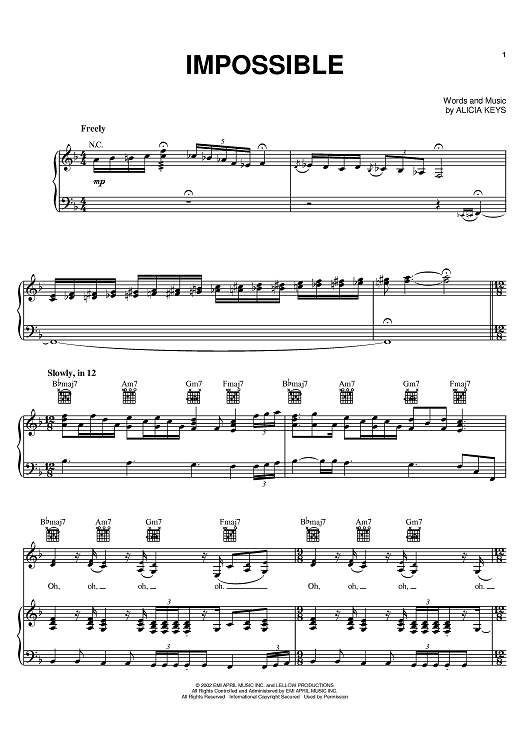"Impossible" Sheet Music by Alicia Keys