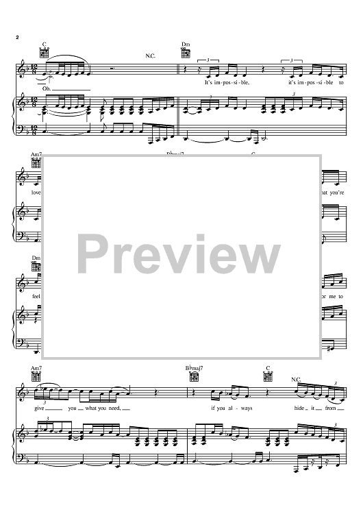 Digital Sheet Music for Impossible by Alicia Keys, Christina Aguilera scored for Piano/Vocal/Chords; id:371048