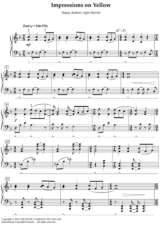 Digital Sheet Music for Impressions on Yellow by Kevin Olson scored for Piano; id:503307
