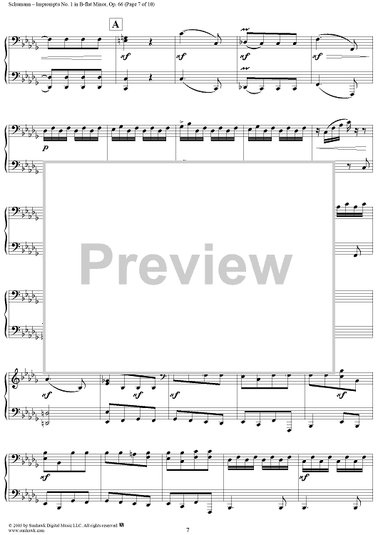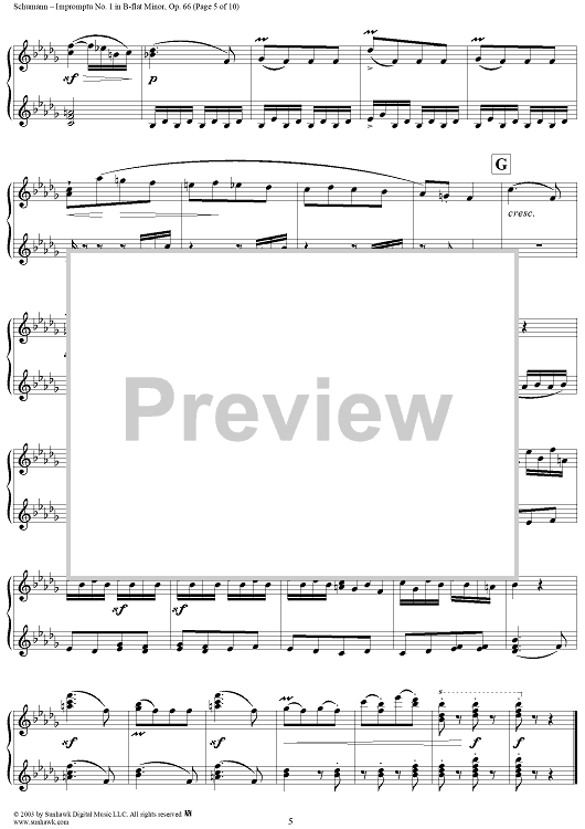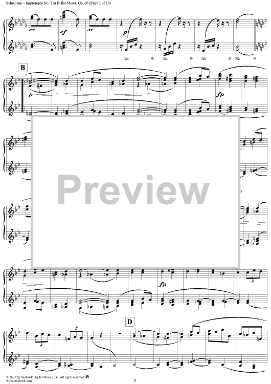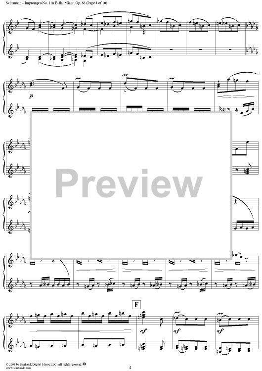 Digital Sheet Music for Impromptu No. 1 in B-flat Minor by Robert Schumann scored for 1 Piano, 4 Hands; id:294469