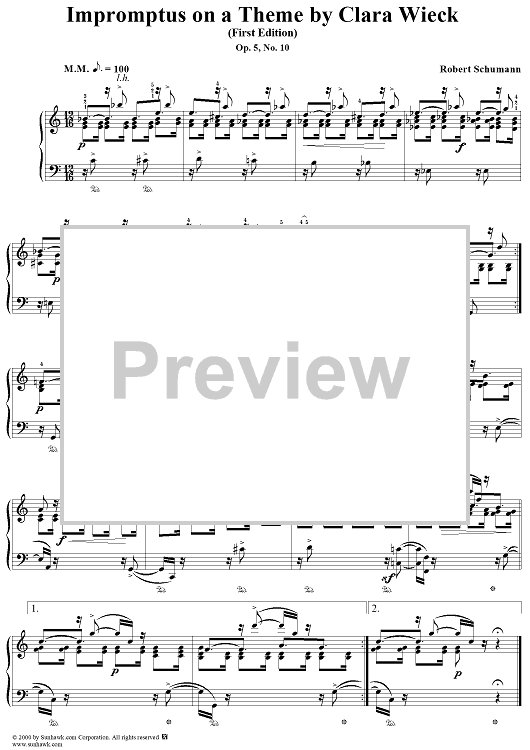 Digital Sheet Music for Impromptu No. 10 by Robert Schumann scored for Piano Solo; id:258440