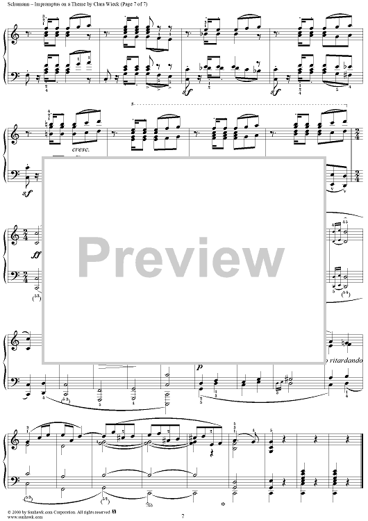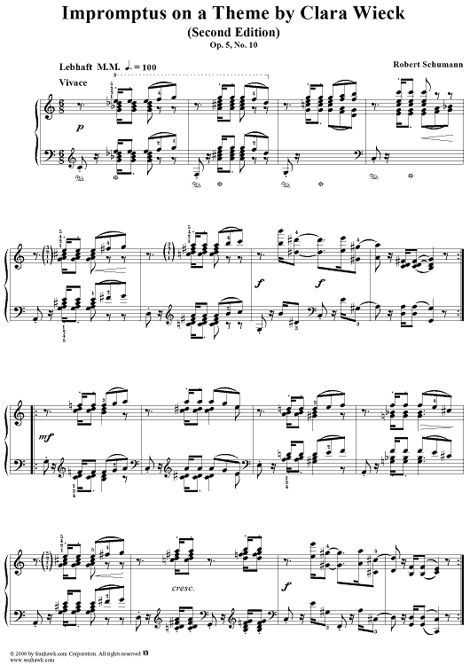 Digital Sheet Music for Impromptu No. 10 by Robert Schumann scored for Piano Solo; id:258466