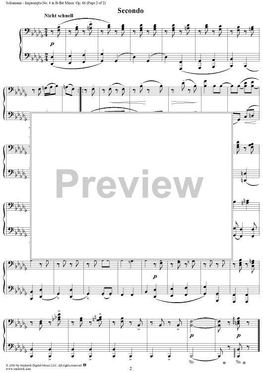 Digital Sheet Music for Impromptu No. 4 in B-flat Minor by Robert Schumann scored for 1 Piano, 4 Hands; id:294482