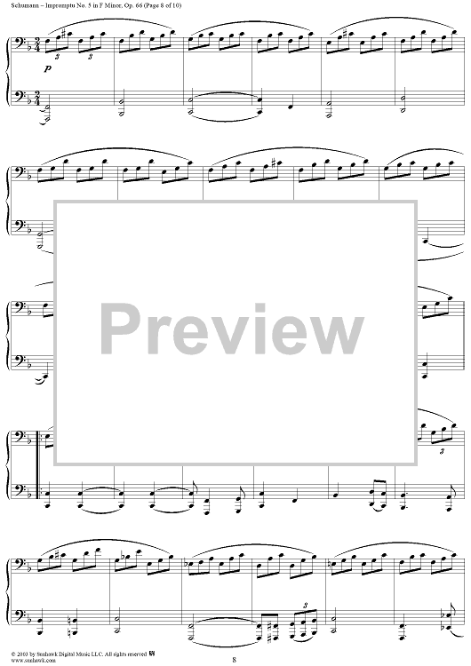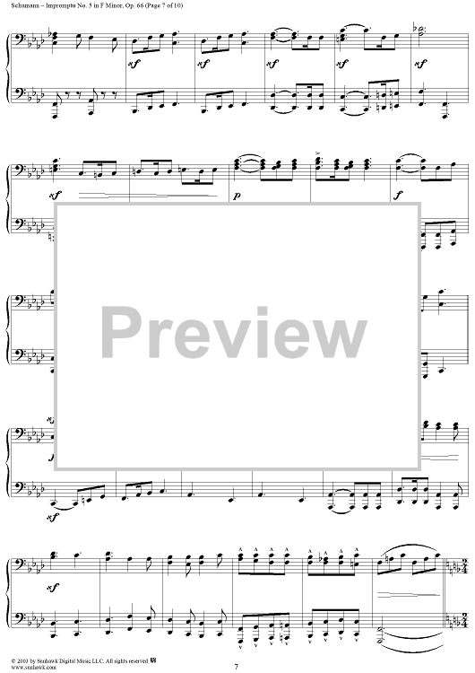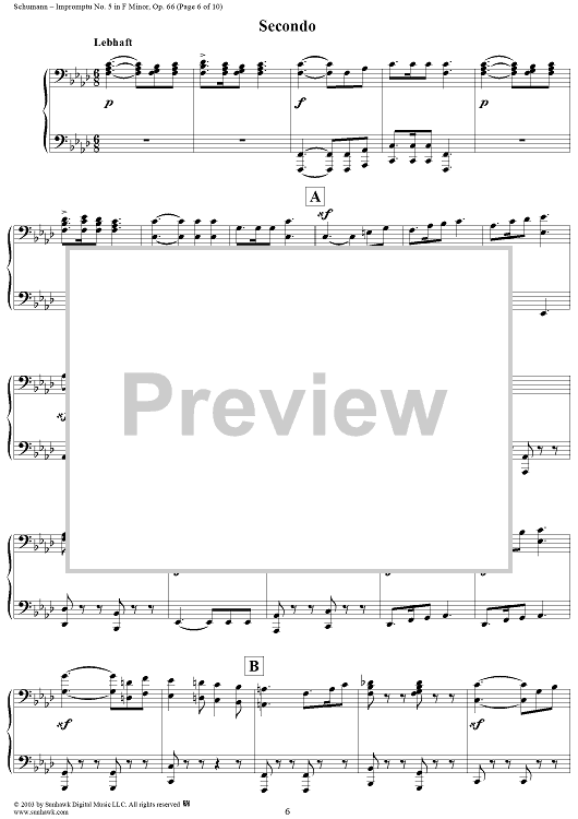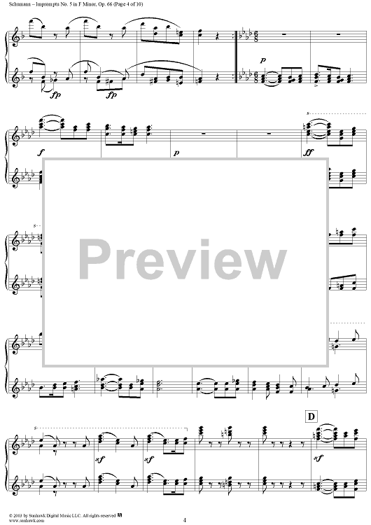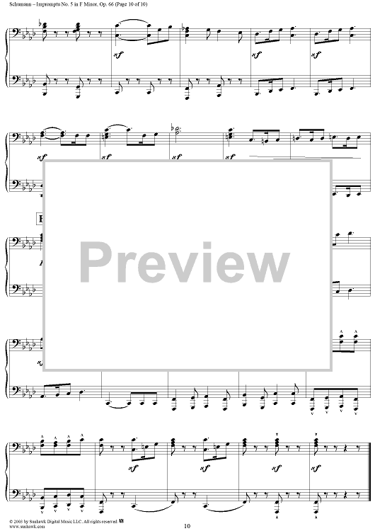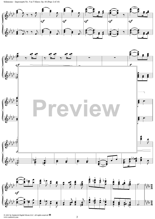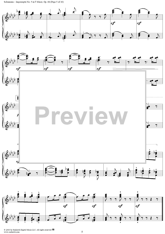 Digital Sheet Music for Impromptu No. 5 in F Minor by Robert Schumann scored for 1 Piano, 4 Hands; id:294483