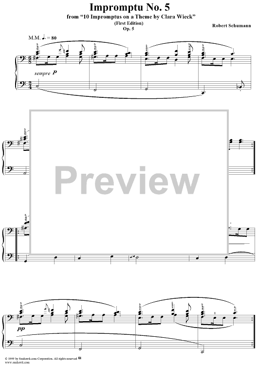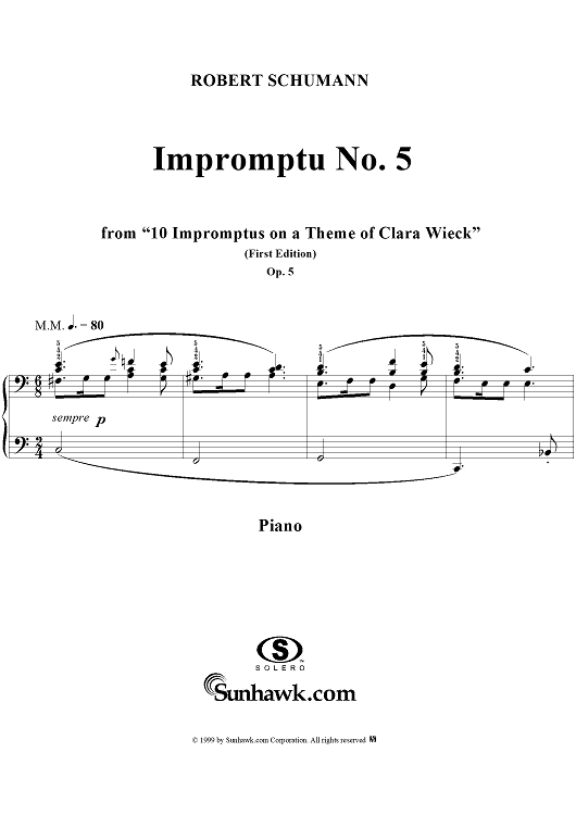 Digital Sheet Music for Impromptu No. 5 by Robert Schumann scored for Piano Solo; id:178128