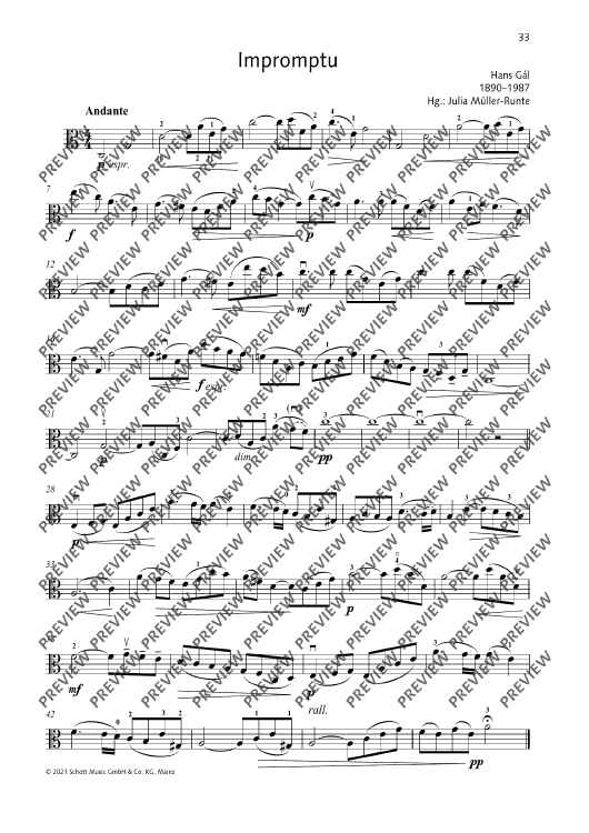 Digital Sheet Music for Impromptu by Hans Gál scored for Viola And Piano; id:496346