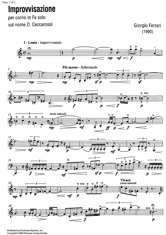 Digital Sheet Music for Improvvisazione sul nome "D. Ceccarossi" by , Giorgio Ferrari scored for F Horn; id:351216
