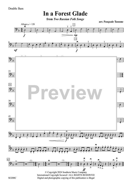 Digital Sheet Music for In a Forest Glade (from Two Russian Folk Songs) - Double Bass by Traditional, Pasquale Tassone scored for String Orchestra; id:506258
