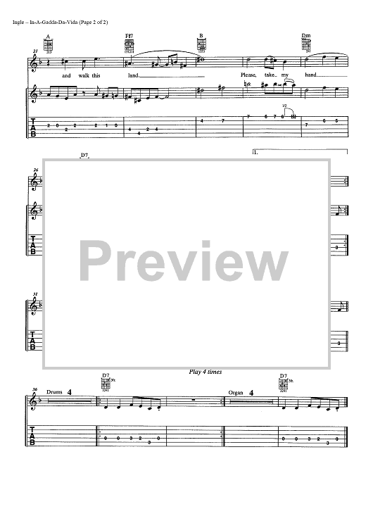 Digital Sheet Music for In-A-Gadda-Da-Vida by Doug Ingle, Iron Butterfly scored for Easy Guitar Tab/Vocal/Chords; id:449137