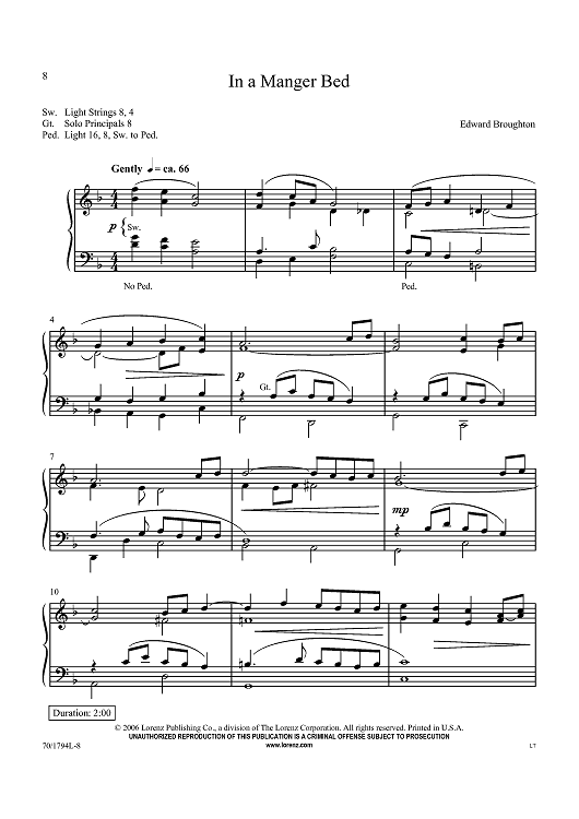 Digital Sheet Music for In a Manger Bed by Edward Broughton scored for Organ Solo; id:437757