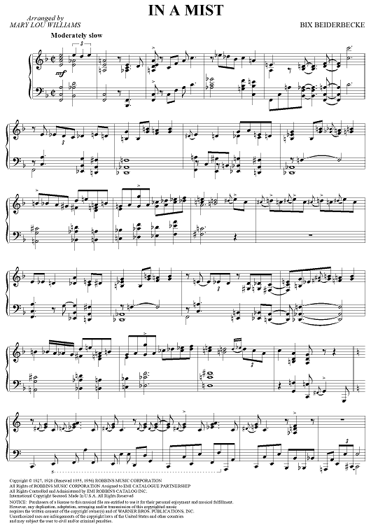 Digital Sheet Music for In a Mist by Bix Beiderbecke, Mary Lou Williams scored for Piano Solo; id:119655
