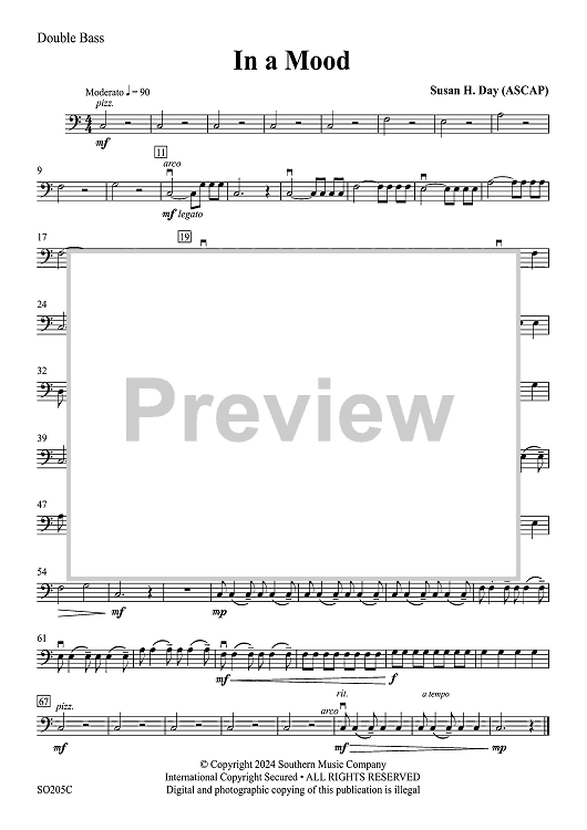 Digital Sheet Music for In a Mood - Double Bass by Susan Day scored for String Orchestra; id:504735