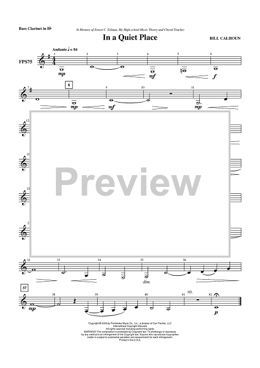 "In A Quiet Place - Bass Clarinet" Sheet Music by Bill Calhoun