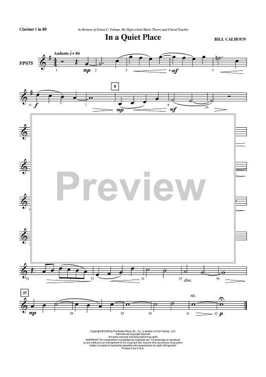 "In A Quiet Place - Clarinet 1 in B-flat" Sheet Music by Bill Calhoun