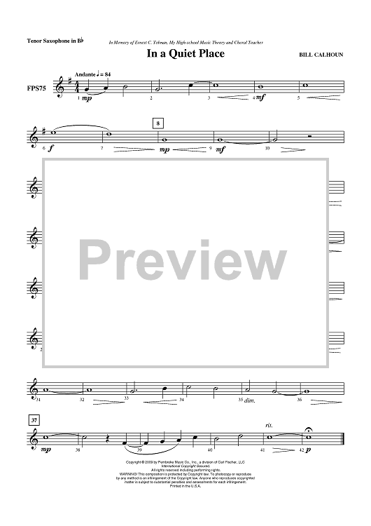"In A Quiet Place - Tenor Sax" Sheet Music by Bill Calhoun