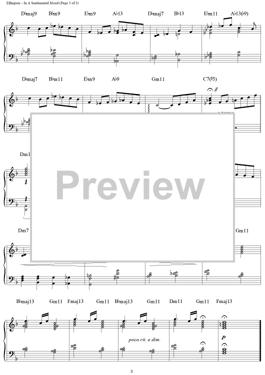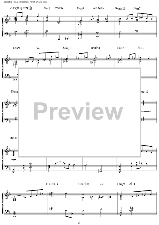 Digital Sheet Music for In a Sentimental Mood by Duke Ellington, Irving Mills, Manny Kurtz scored for Piano Solo; id:120636