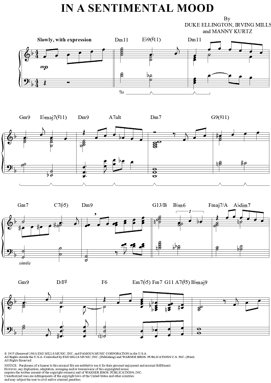 "In a Sentimental Mood" Sheet Music by Duke Ellington