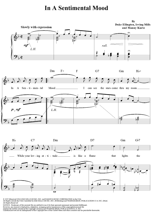 "In a Sentimental Mood" Sheet Music by Duke Ellington