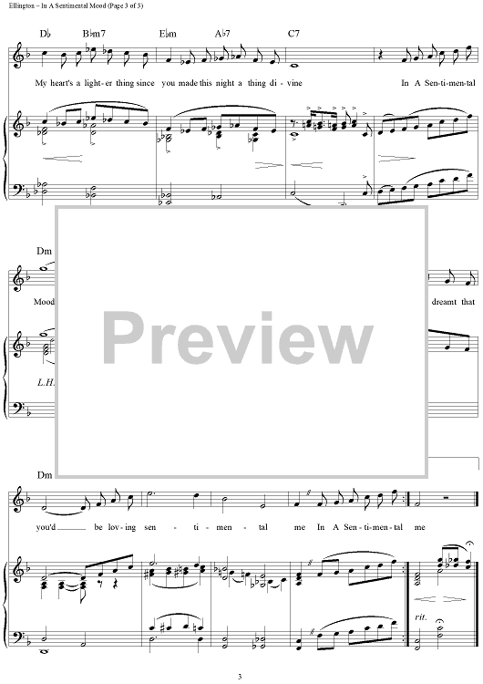 Digital Sheet Music for In a Sentimental Mood by Duke Ellington, Irving Mills, Manny Kurtz scored for Piano/Vocal/Chords; id:270848