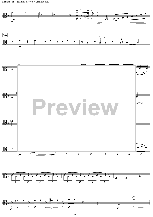 "In A Sentimental Mood - Viola" Sheet Music by Duke Ellington