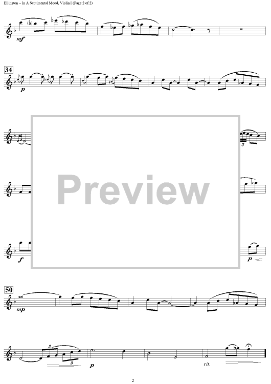"In A Sentimental Mood - Violin 1" Sheet Music by Duke Ellington