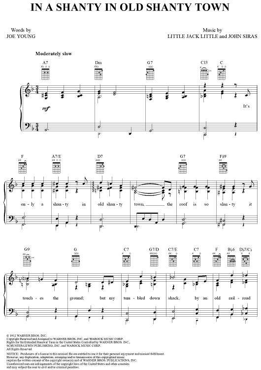 Digital Sheet Music for In a Shanty in Old Shanty Town by Little Jack Little, John Siras, Joseph Young scored for Piano/Vocal/Chords; id:297252
