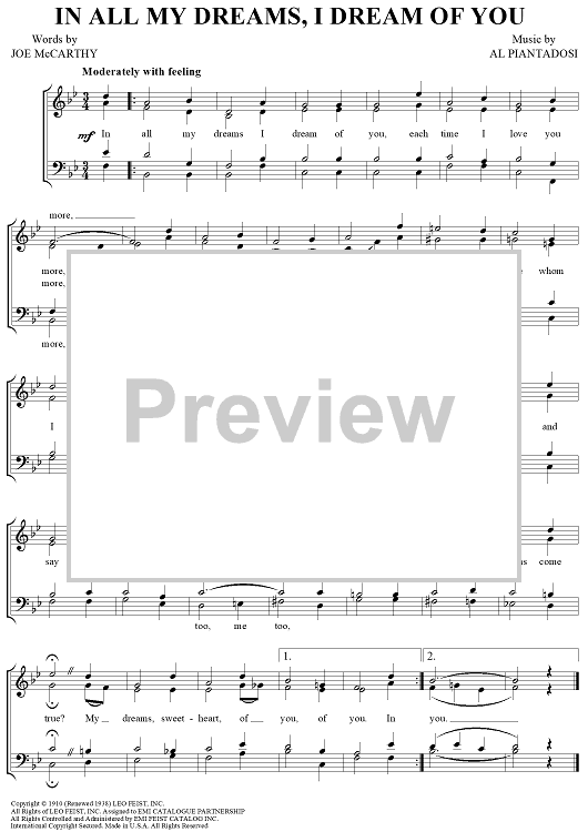 Digital Sheet Music for In All My Dreams, I Dream of You by Joe McCarthy, Al Piantadosi scored for Barbershop Quartet; id:254778