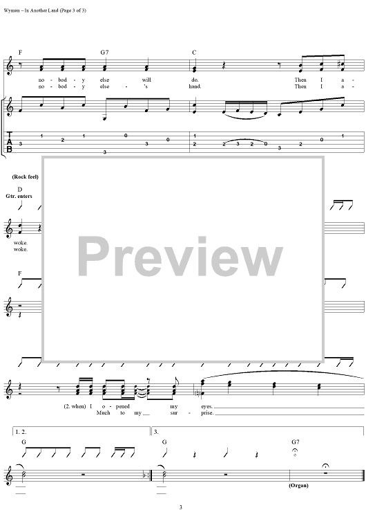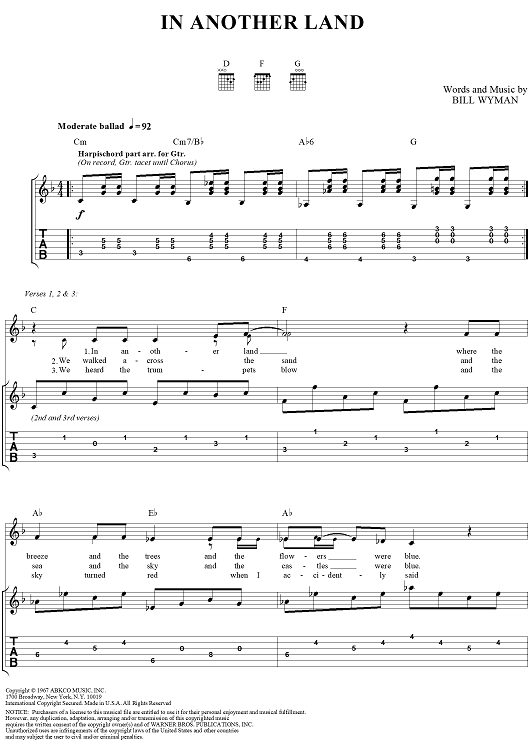 Digital Sheet Music for In Another Land by The Rolling Stones, Bill Wyman scored for Guitar Tab/Vocal; id:316395