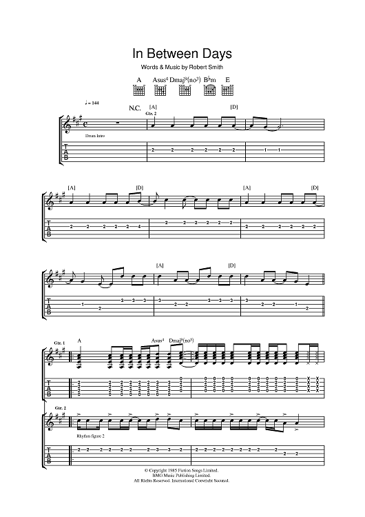 Digital Sheet Music for In Between Days by Wolfman Jack, The Cure scored for Guitar Tab; id:396345