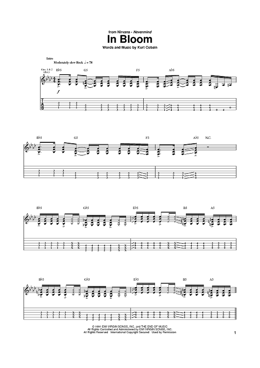 Digital Sheet Music for In Bloom by Kurt Cobain, Nirvana scored for Guitar Tab; id:371163