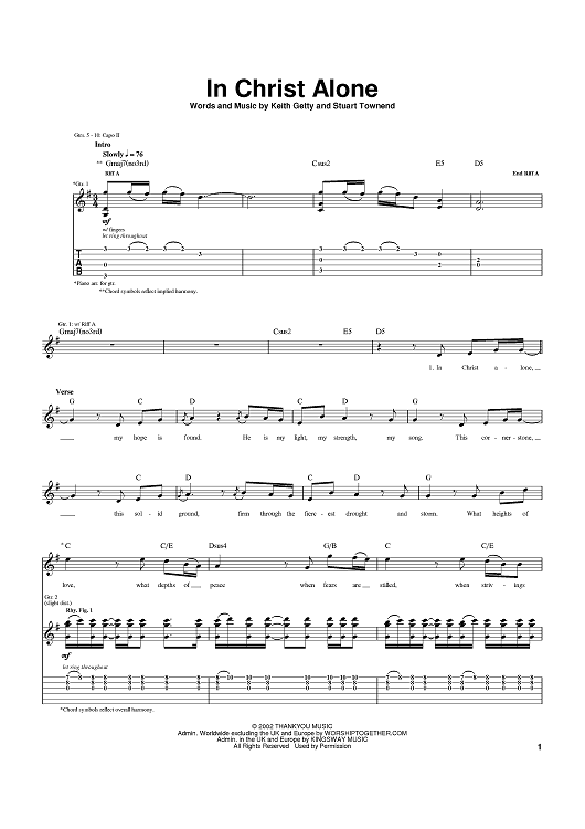 Digital Sheet Music for In Christ Alone by Stuart Townend, Keith Getty, Newsboys scored for Guitar Tab; id:371631