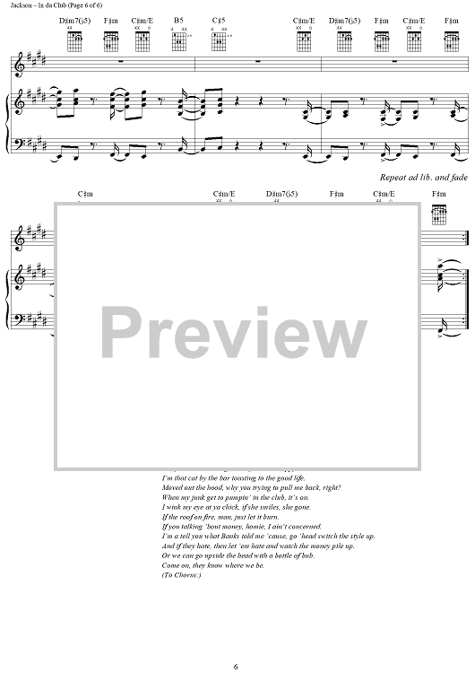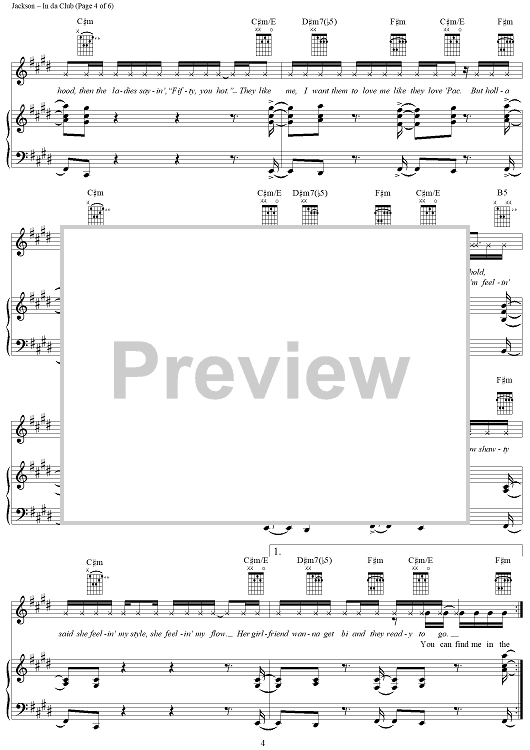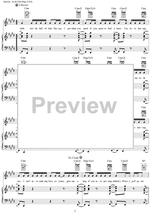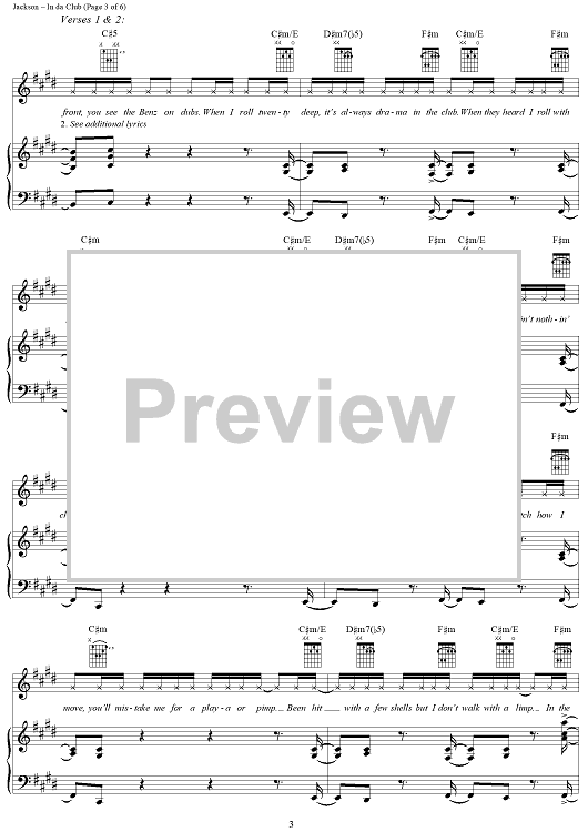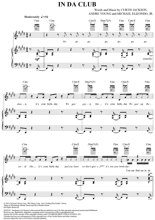 Digital Sheet Music for In da Club by Andre Young, Mike Elizondo, 50 Cent scored for Piano/Vocal/Chords; id:296237