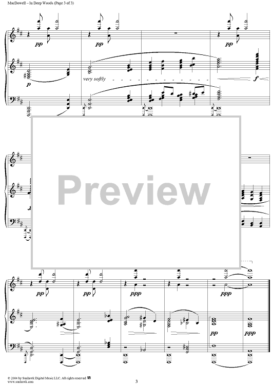 Digital Sheet Music for In Deep Woods, Op. 62, No. 5 by Edward MacDowell scored for Piano Solo; id:295516