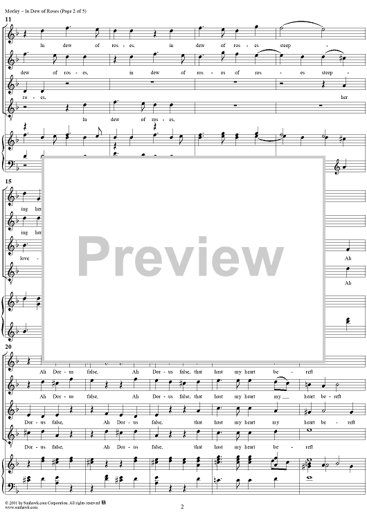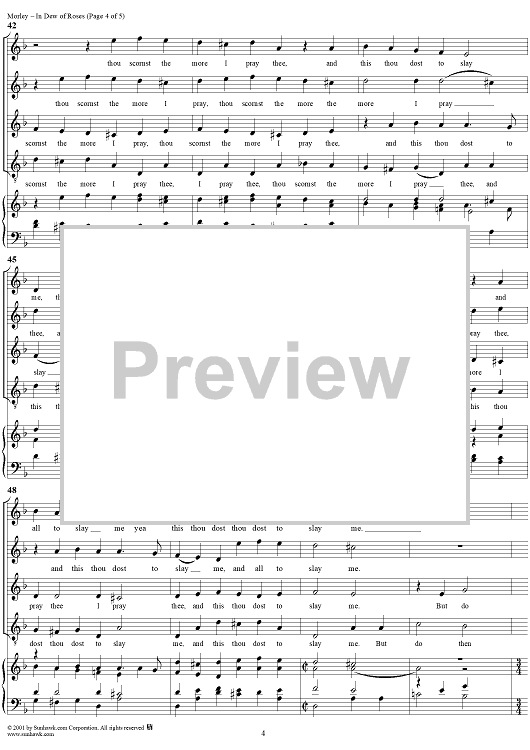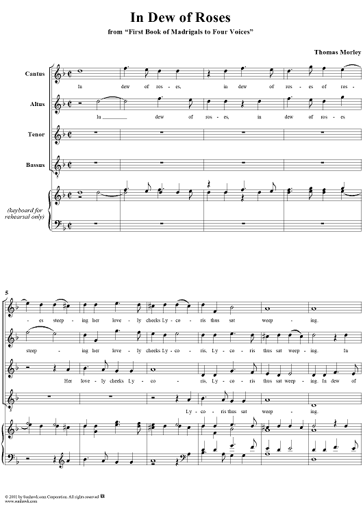 Digital Sheet Music for In Dew of Roses by Thomas Morley scored for Four-part Mixed Chorus; id:260154