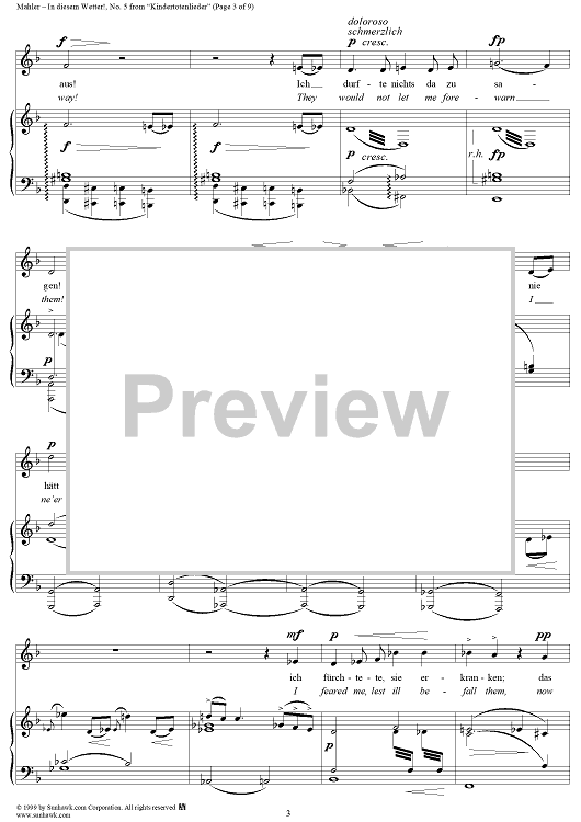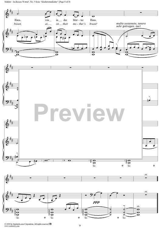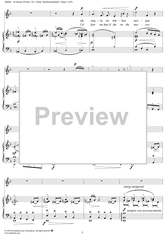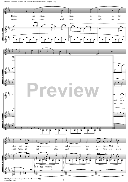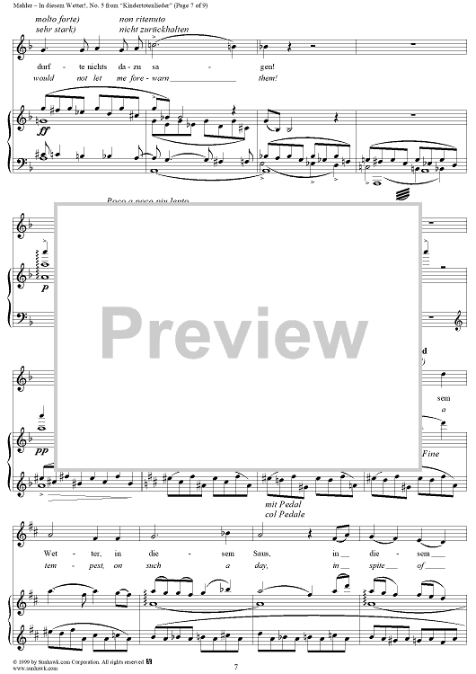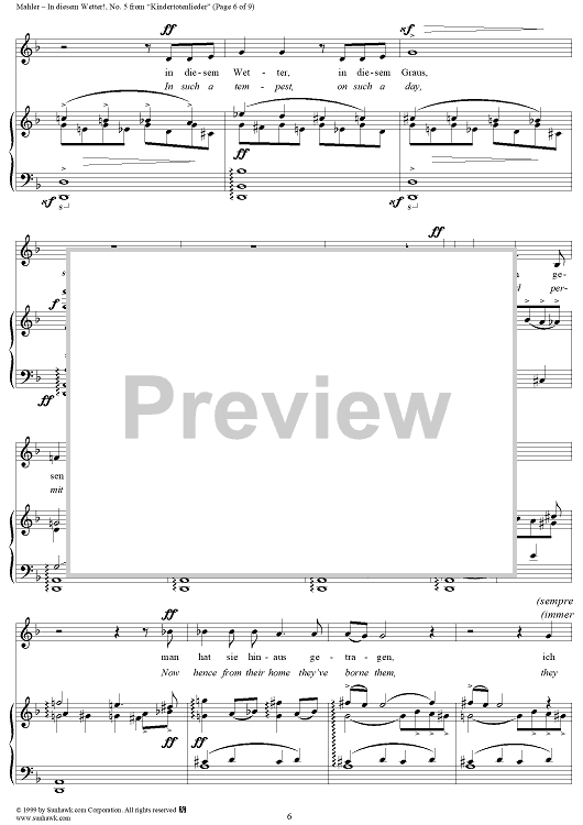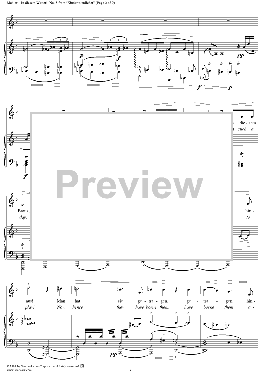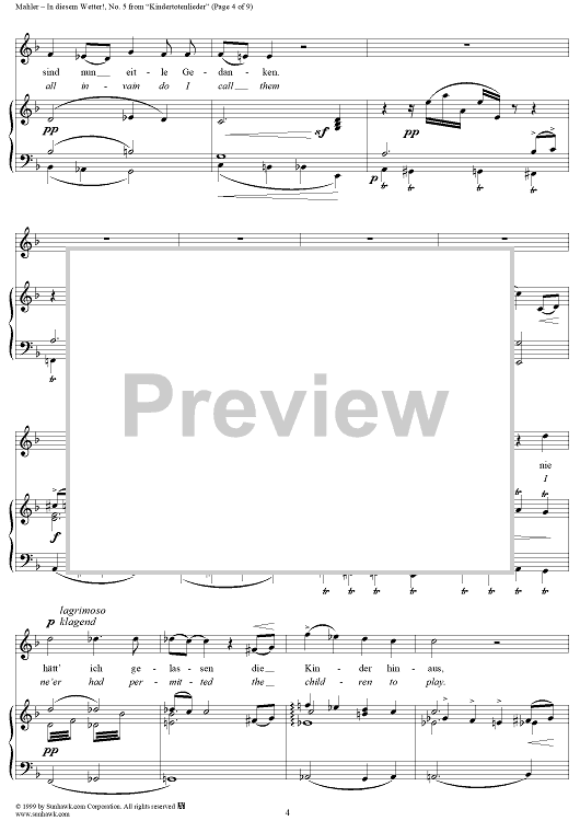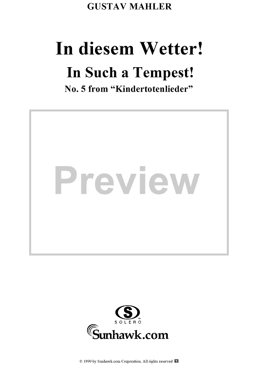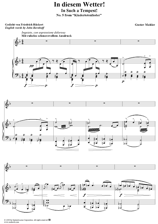 Digital Sheet Music for In diesem Wetter! - No. 5 From "Kindertotenlieder" by Gustav Mahler, Friedrich Rückert scored for Voice/Piano; id:250934