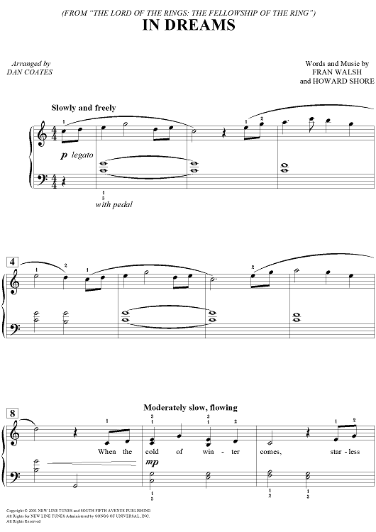 Digital Sheet Music for In Dreams by Dan Coates, Howard Shore, Fran Walsh scored for Easy Piano/Vocal/Chords; id:457517