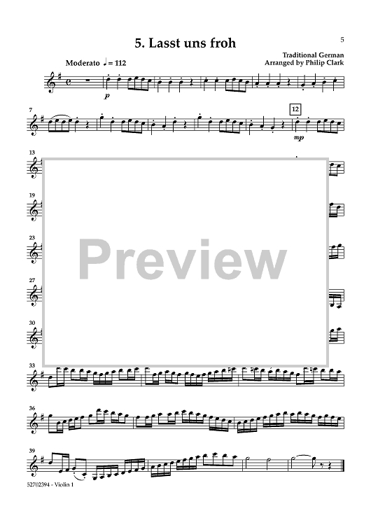 Digital Sheet Music for In Dulce Jubilo - Eight Traditional Carols for String Trio - Violin 1 by , Various, Philip Clark scored for String Trio; id:460243